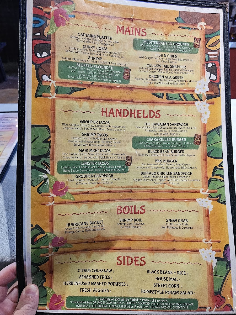 The menu boasts an array of mouthwatering options, from the savory Buffalo Chicken Flatbread to the fresh Tuna Sashimi and indulgent Crab Fries. Seafood lovers can dig into delicious specials like the Fried Grouper Sandwich or refreshing Grilled Grouper Tacos. Appetizers like the Bayou Nachos and Calamari Fritti kick off a delightful culinary experience.